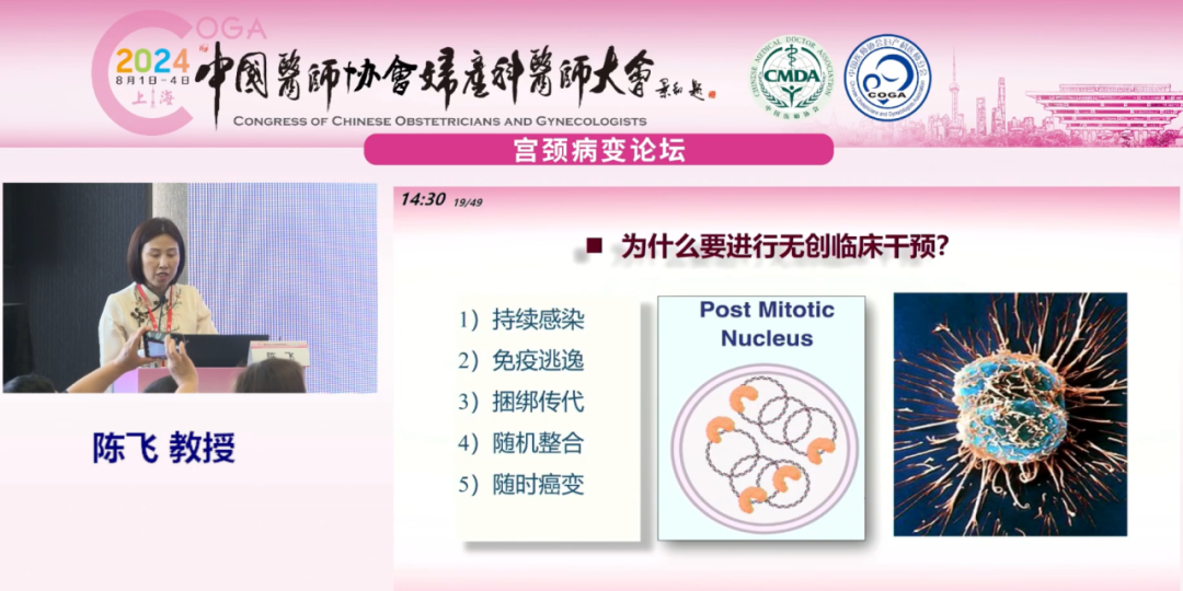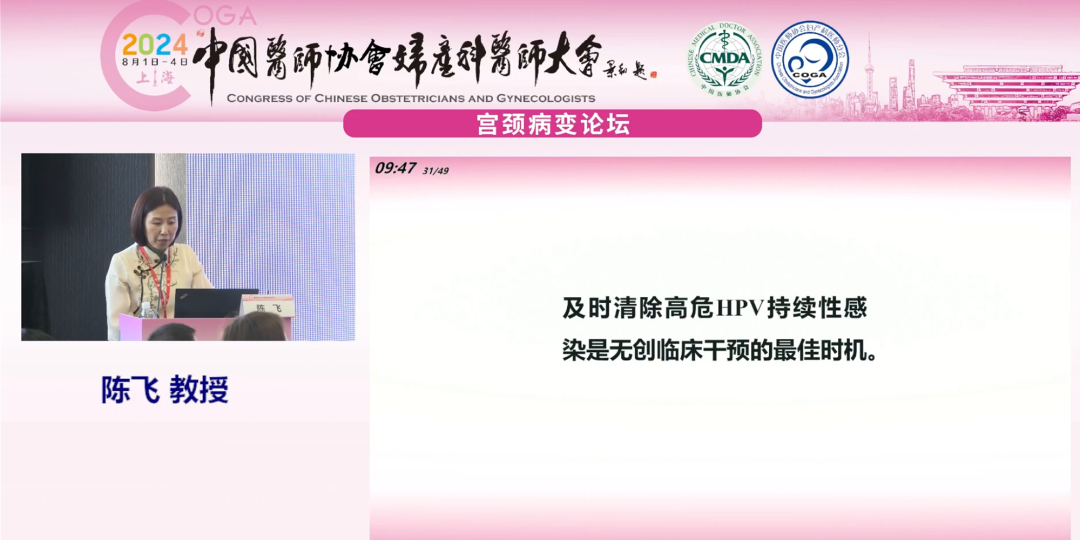 北京協(xié)和醫(yī)院陳飛教授就《清除高危HPV無創(chuàng)臨床干預(yù)》為題進行報告: