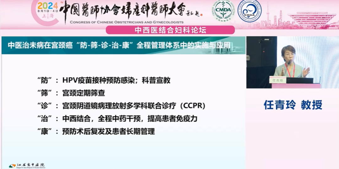 江蘇省中醫(yī)院任青玲教授就《中西醫(yī)結(jié)合宮頸癌防治一體化平臺建設(shè)》為題進(jìn)行報(bào)告:
