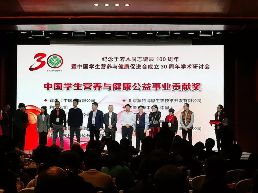 2019年1月12日,紀(jì)念于若木同志誕辰100周年暨中國學(xué)生營養(yǎng)與健康促進(jìn)會(huì)成立30周年學(xué)術(shù)研討會(huì)在京舉行。 大會(huì)頒發(fā)了中國學(xué)生營養(yǎng)與健康事業(yè)突出貢獻(xiàn)獎(jiǎng)、中國學(xué)生營養(yǎng)與健康事業(yè)優(yōu)秀個(gè)人獎(jiǎng)、中國學(xué)生營養(yǎng)與健康公益事業(yè)貢獻(xiàn)獎(jiǎng)等獎(jiǎng)項(xiàng)。其中,派特生物被大會(huì)授予“中國學(xué)生營養(yǎng)與健康公益事業(yè)貢獻(xiàn)獎(jiǎng)”。