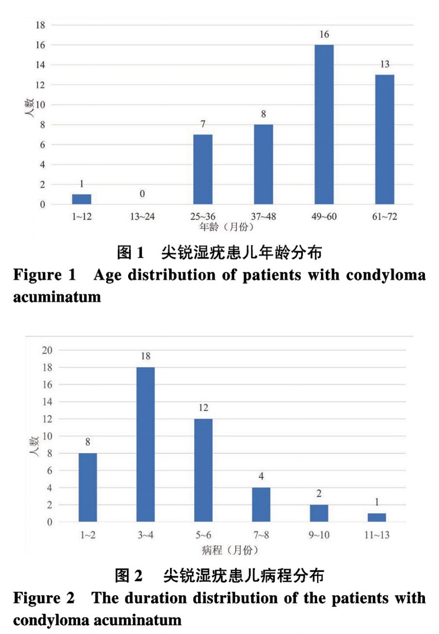 選取2015年1月——2020年12月于西南醫(yī)科大學(xué)附屬醫(yī)院皮膚科門診診治的45 例尖銳濕疣患兒為研究對象。