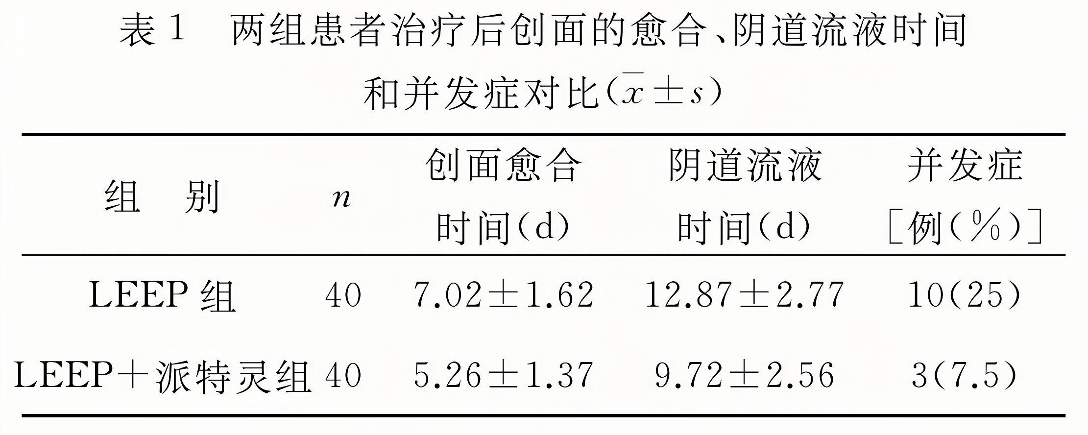 LEEP+派特靈組的創(chuàng)面愈合和陰道流液時間均顯著短于LEEP組(P<0.05)。