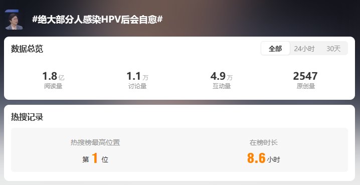 4月15日至21日是第30個全國腫瘤防治宣傳周,在此期間微博上的一條熱搜引起了廣泛的關(guān)注——“絕大部分人感染HPV后會自愈”。